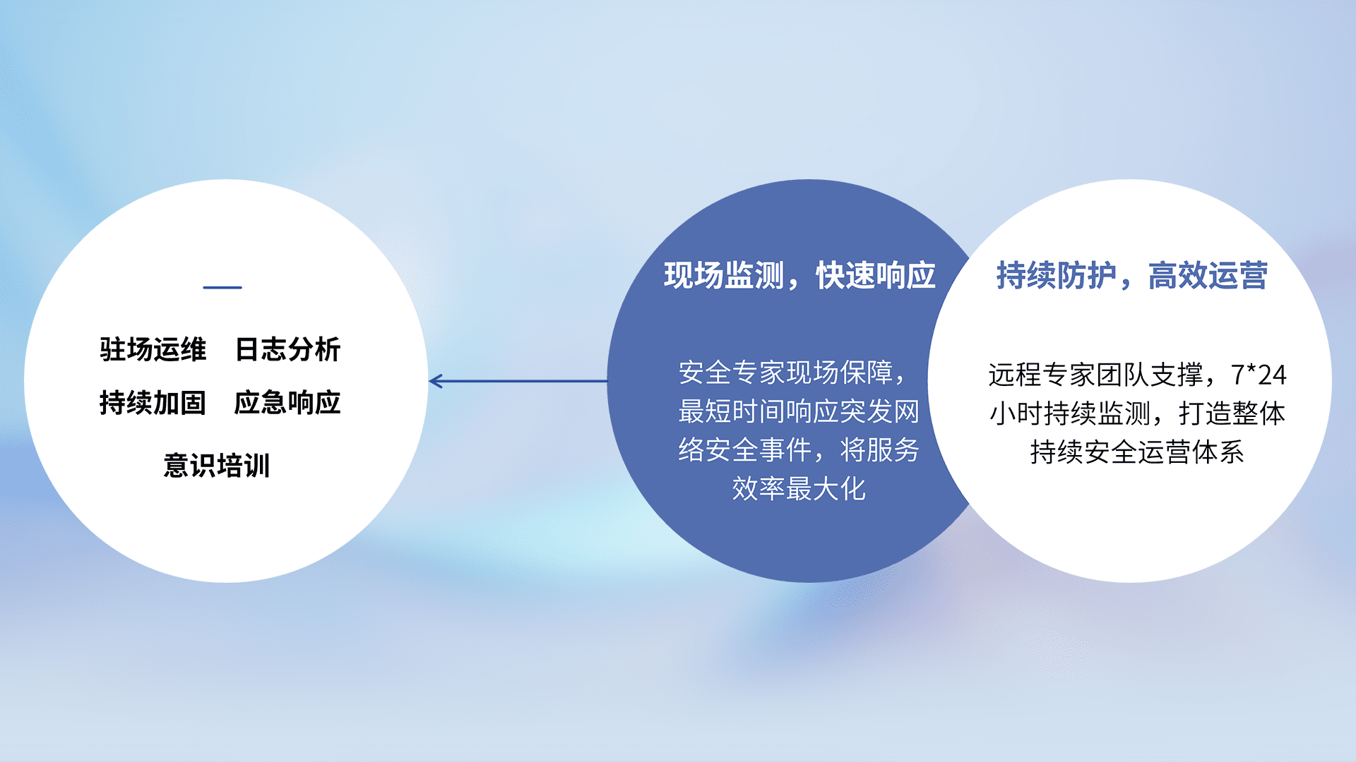 针对客户行业特性,,,,提供专属的一站式安全管理服务,,帮助客户全面感知网络空间威胁,,通过安全专家的线上、、线下防护支持,,实现风险闭环,,将安全保障常态化,,,为客户打造常态化安全运维运营服务。。